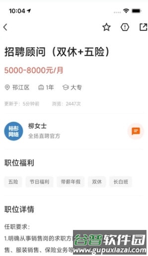 4、求职者投递简历,双方通过应用内置的沟通工具进行直接交流。