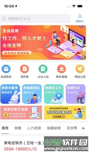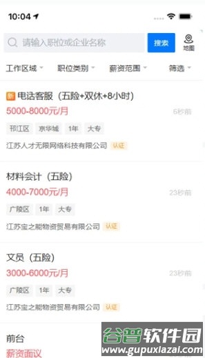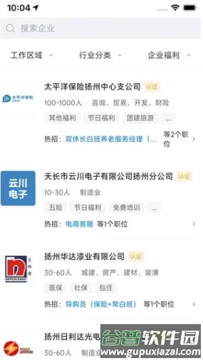 1、展示扬州地区各行业众多岗位,并按类别、薪资、区域清晰归类,便于快速查找。