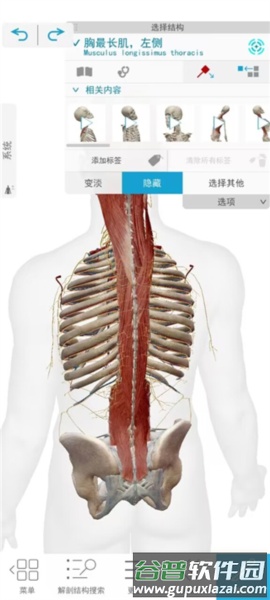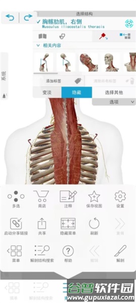 4、可在任意视角与缩放级别查看数千个肌肉、骨骼、神经等三维模型,并支持增强现实视图。
