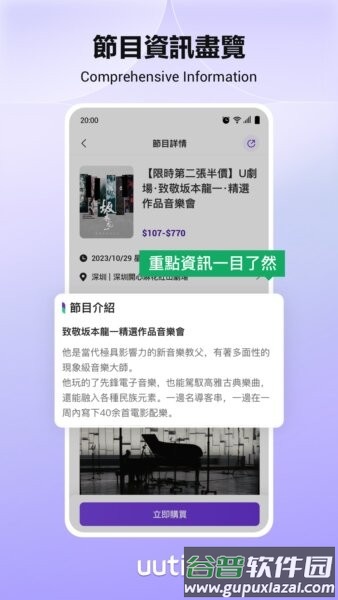 3. 详细活动资料:每个活动页面都有完整的介绍,包括时间、票价和座位详情,帮助你快速决定要不要买票。