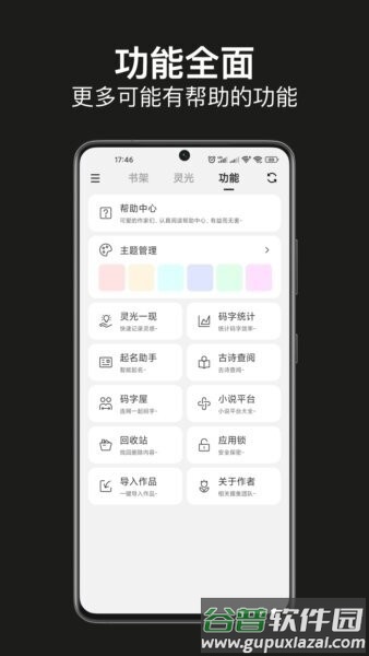 应用配备灵光一现灵感速记、码字统计、起名助手、古诗查阅等多样化功能。这些工具在创作过程中提供实用支持,无论是捕捉灵感、统计进度,还是为角色取名、引用诗词,都能丰富创作手段,降低写作难度。