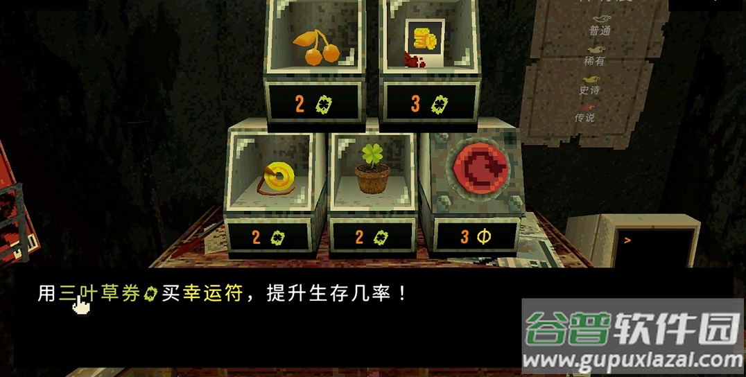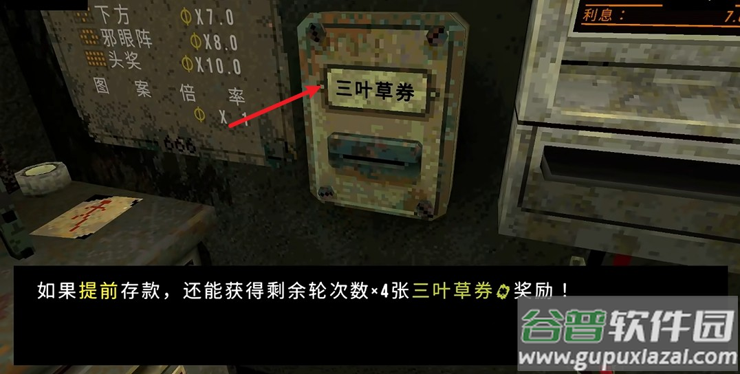 4、三叶草券用于购买幸运符提升生存率,当ATM存入足额硬币时商店会自动刷新免费商品;
