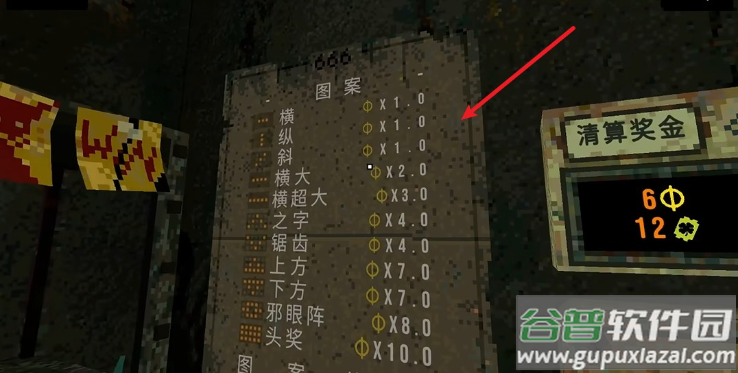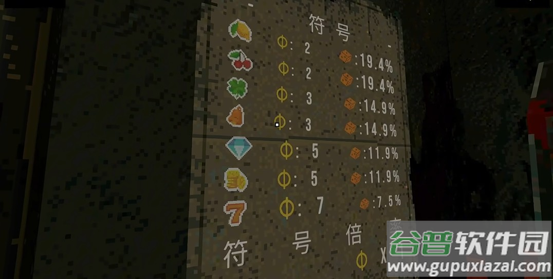 5、幸运机两侧墙面展示着符号与图案对应的倍率信息;