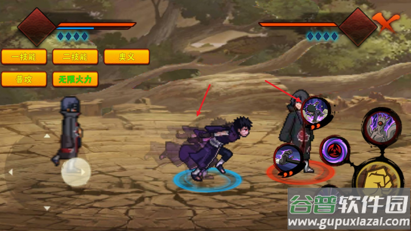 6、不同的忍者也有着特色的机制,例如带土的完美虚化,在对手攻击你的时候开启神威即可触发。