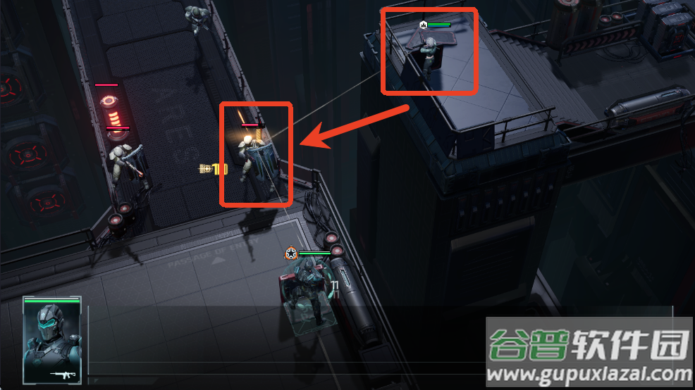 6、部署队友时可以通过观察威胁线来判断敌人的侧击情况,红色线代表敌人可侧击我方,橙色线代表敌人的攻击会被掩体挡住。