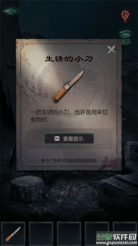 1、查看篝火,拾取【生锈的小刀】【铁棍】;