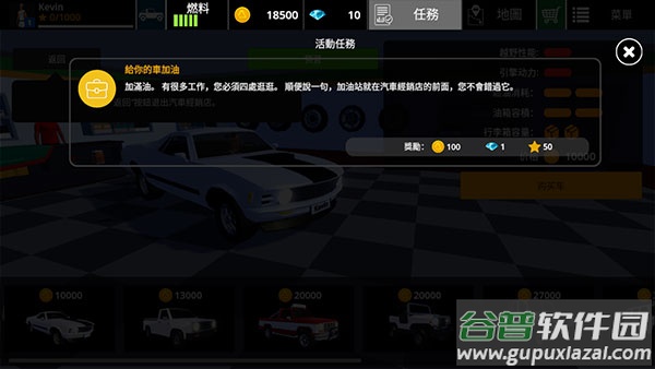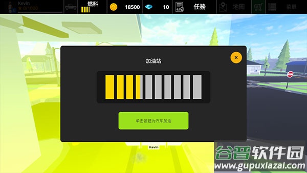3、需要根据上方的任务来进行游戏,首先要给你的车加满油。