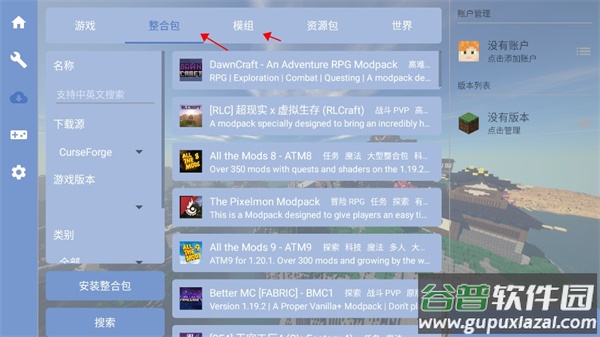 进入启动器主界面点击模组管理按钮;在分类列表浏览热门整合包与独立模组;选择需要的资源点击下载最新版本;指定存储路径后开始自动安装;下载完成后重启启动器即可生效。