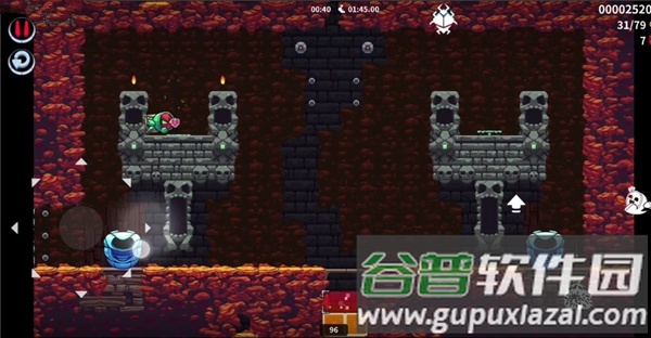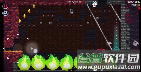5、最后通过连续跳跃避开移动钉刺,抵达终点完成关卡。