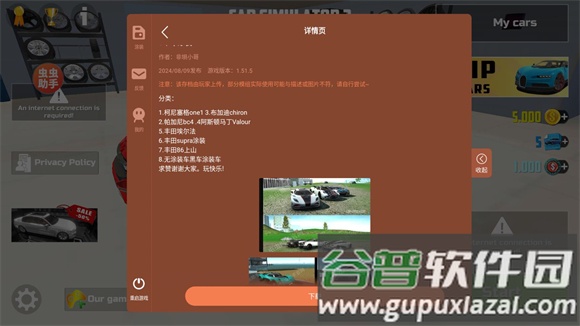 汽车模拟器2虫虫助手版本为玩家带来了海量精美涂装和丰富车型选择,在这个开放世界驾驶游戏中,你可以随心所欲地更换车辆皮肤,体验不同风格的改装乐趣。游戏内设有多款真实还原的豪车内饰,支持自由切换视角观察细节,超大规模城市地图任你驰骋,还能参与刺激的多人竞速对决。无论是街头飙车还是休闲兜风都能找到乐趣,现在下载还能解锁独家限定涂装,想体验的玩家快来谷普获取吧。