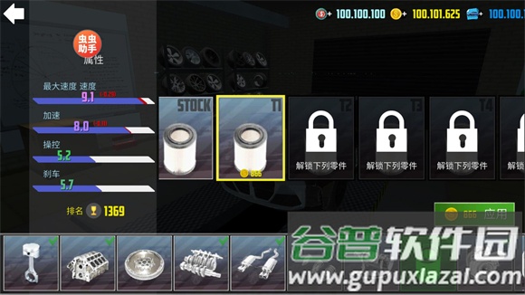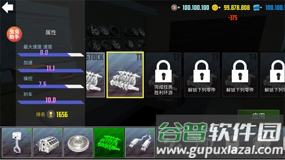 3、选择具体部件会展开可用改装件的性能参数对比;