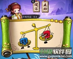6-3关 图示人物躲避重物选择轻物,谜底是避重就轻;