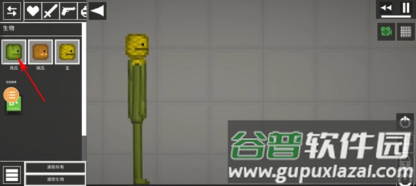 1、点击界面左上角爱心按钮,在生物库选择西瓜人或南瓜人;