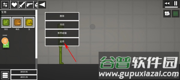 3、快速点击角色手臂两次,在弹出菜单启用冻结功能;