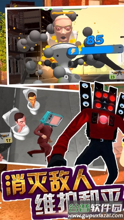 马桶人来袭游戏最新版带来一场紧张刺激的城市冒险旅程,玩家将扮演正义的监控人,直面疯狂的马桶人军团。你需要运用多样武器展开激烈对抗,在错综复杂的都市环境中寻找敌人弱点,守护无辜市民的安全。每一次战斗都考验着反应与策略,只有不断突破自我才能赢得最终胜利。