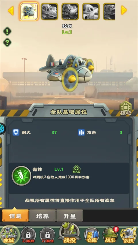 4、战机属性直接加成到战车上,多架战机属性可叠加