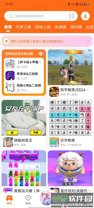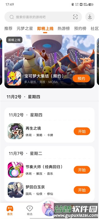 2、首页推送热门游戏,点击即将上线分区可查看近期新游动态,及时预约不错过。