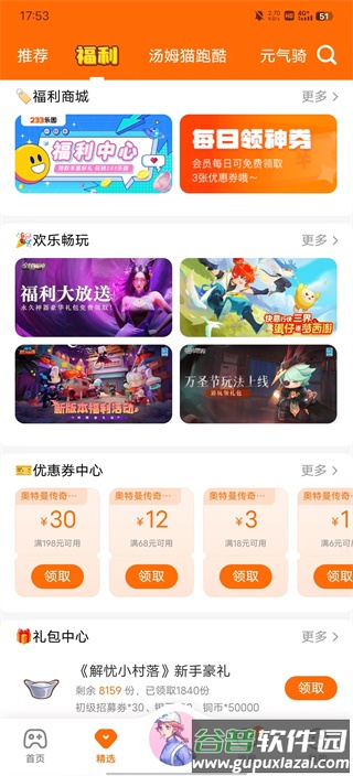 5、福利专区提供游戏道具与折扣券,记得常来领取对应游戏礼包。
