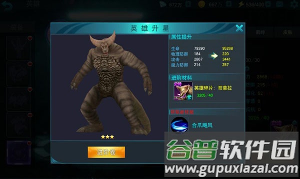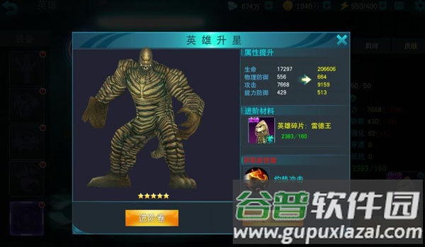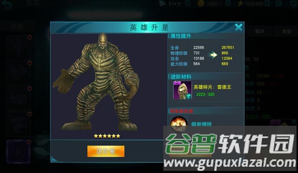 六星作为最高星级,需要320个碎片与55级等级,晋升后解锁最终主动技能,等级上限达到60级。