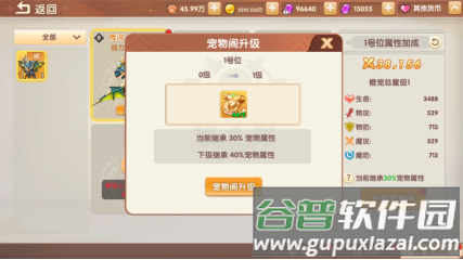 4. 宠物阁可寄存未出战宠物,并将其属性转化给玩家角色;