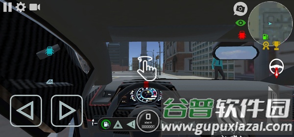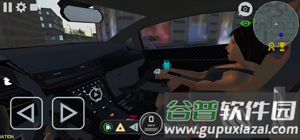 3. 成功打开车门后,界面右上角会出现带有绿色箭头的方向盘标识,点击该标识即可进入驾驶状态。