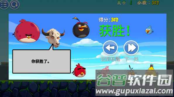 8、将场景中所有的小猪全部击败即可获得胜利,成功完成关卡挑战。