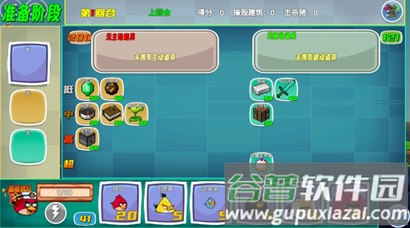 6、进入战斗准备阶段,在这个界面中挑选将要出战的小鸟种类和携带的道具。
