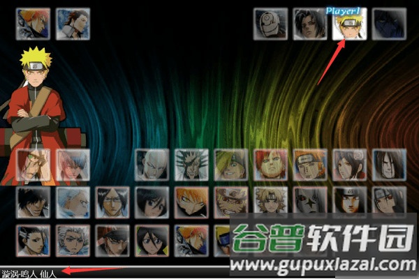 1、启动游戏后选择漩涡鸣人仙人形态进入战场;