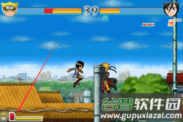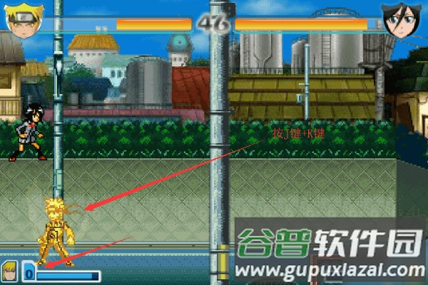 4、同时按下J键与K键即可觉醒为金色鸣人形态。
