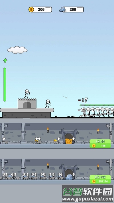 3、指挥火柴人部队采集黄金资源,掌握进阶战斗技巧,体验酣畅淋漓的对抗过程;