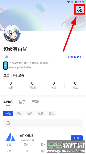 2、在个人中心界面,点击右上角的齿轮图标进入设置;