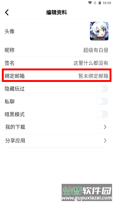 3、找到“绑定邮箱”选项,显示未绑定时点击进入;