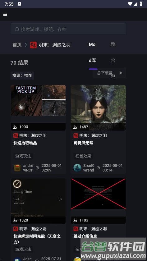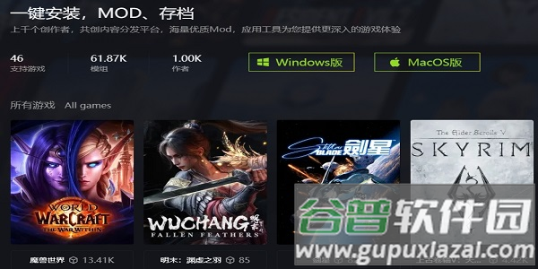 2、点击你感兴趣的游戏图标,页面会展示该游戏相关的多个模组内容;