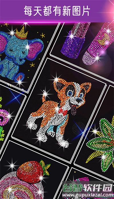1. 采用数字填色机制,将对应编号的宝石嵌入画布,就能创造出精美画作;