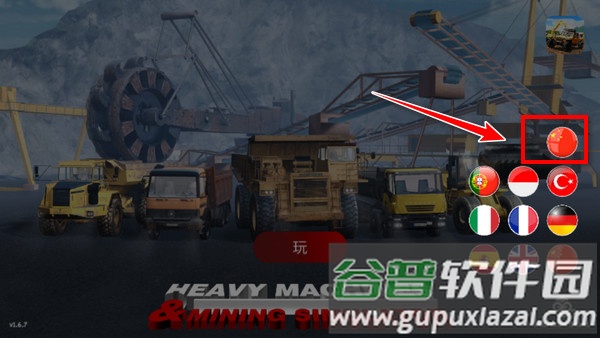 1、启动游戏后点击界面国旗标识,在语言选项中选择简体中文;