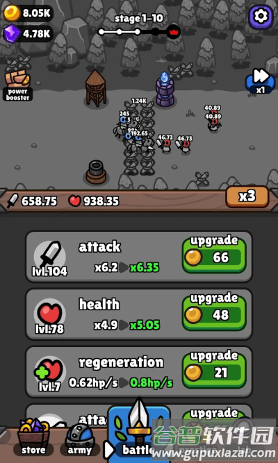 3、通过战斗积累经验对兵种进行强化升级,提升他们的攻击力或防御数值,运用合理的战术安排战胜各种敌人。