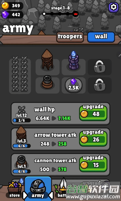 1、根据关卡特点建造相应类型的城墙,并通过资源投入持续强化防御等级,有效阻挡敌人的进攻路线;