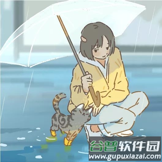 即使下雨天猫咪也想亲近你;图片中猫咪侧面有卷卷图案。