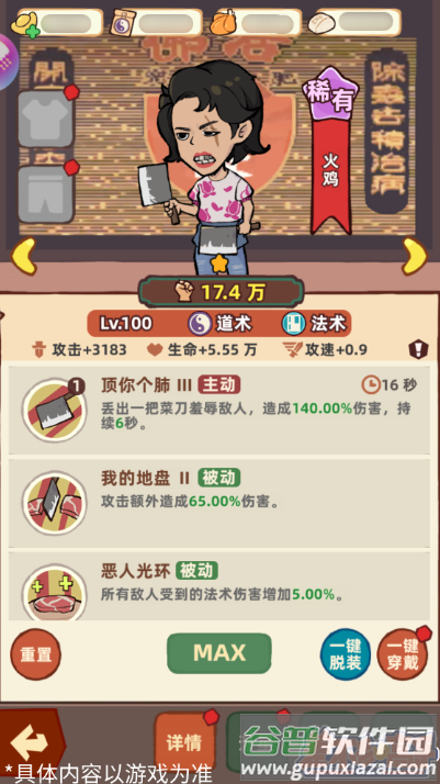 稀有品质的火鸡可通过推进主线获得,其主动技能能将普通攻击转化为旋转菜刀,形成范围伤害。被动天赋不仅提升自身输出,还能让受击目标承受更多法术伤害,有效增强全队攻击效率。这位角色在前期就值得重点培养。