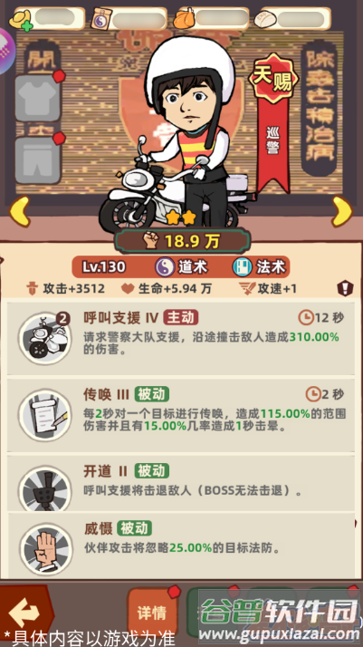 天赐品质的巡警是法系队伍的最佳搭档,被动技能让队友攻击无视法术防御,主动技能与被动天赋都带有控制效果。解锁开道技能后,主动攻击能击退沿途所有敌人。传唤技能每两秒对范围内敌人造成伤害并概率眩晕。这位集增伤与控制于一身的角色,推荐作为团队辅助重点培养。
