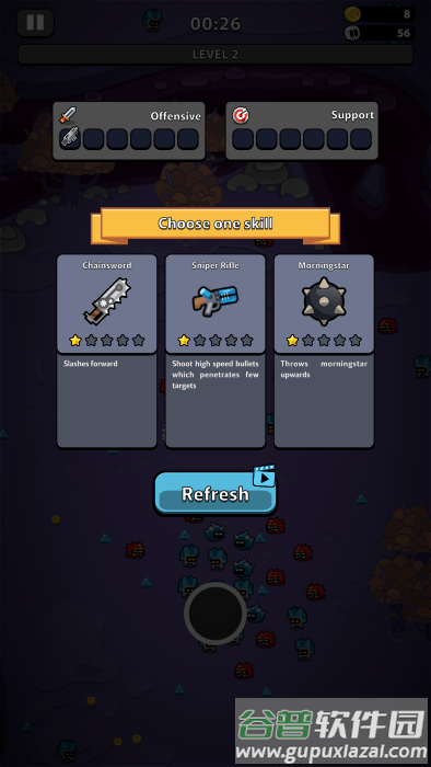升级时从三个随机技能中做出选择,合理搭配能产生意想不到的效果。