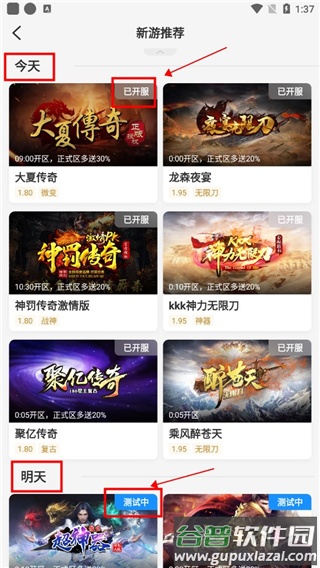 3、新游板块每日推送游戏推荐,标注服务器开启状态提示;