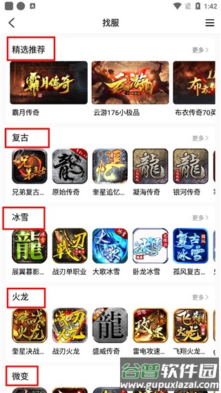 5、找服功能按游戏类型分类排列,方便玩家筛选目标服务器;