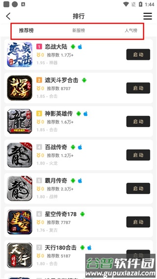 6、排行榜单分为推荐榜新服榜人气榜三类参考榜单;