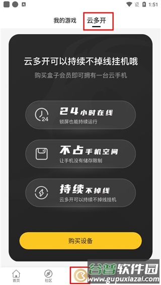 10、在玩页面支持云多开功能,保持游戏持续在线状态;