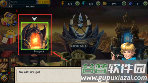 1、点击界面中的绿色怪物标识,开启世界突袭首章挑战;