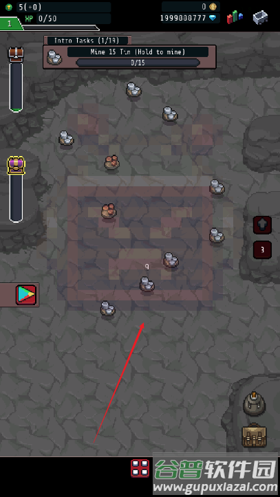 2、进入矿区后,长按画面角色就会开始挖掘,矿石将不断落入背包;
