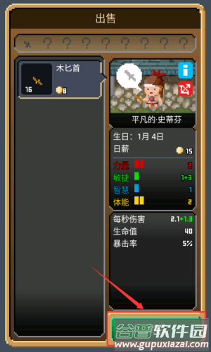 1、先查看木匕首的属性信息,然后点击界面中绿色标注的出售按钮。