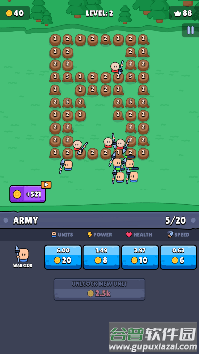 3. 积累足够金币后,可召唤更多士兵加入战斗,或用于提升攻击、生命等属性;