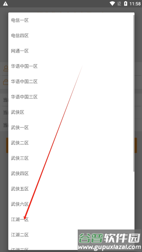 2、进入应用后选择对应的游戏大区。